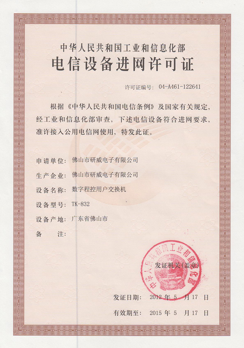 電信設(shè)備進網(wǎng)許可證