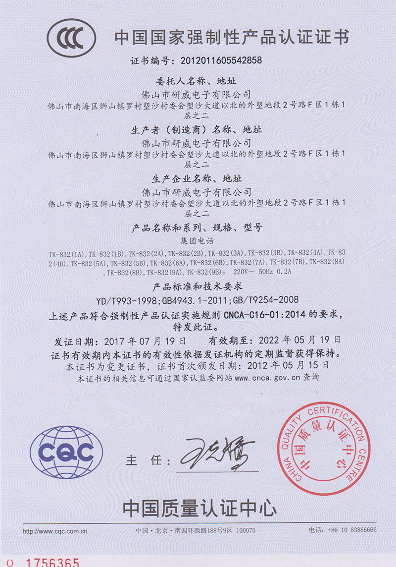 中國國家強制性產(chǎn)品認(rèn)證證書
